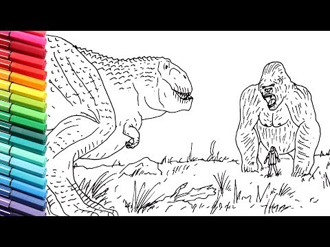 Drawind And Coloring King Kong Vs Trex Dinosaur Color Pages For Children How To Draw King Kong Youtube