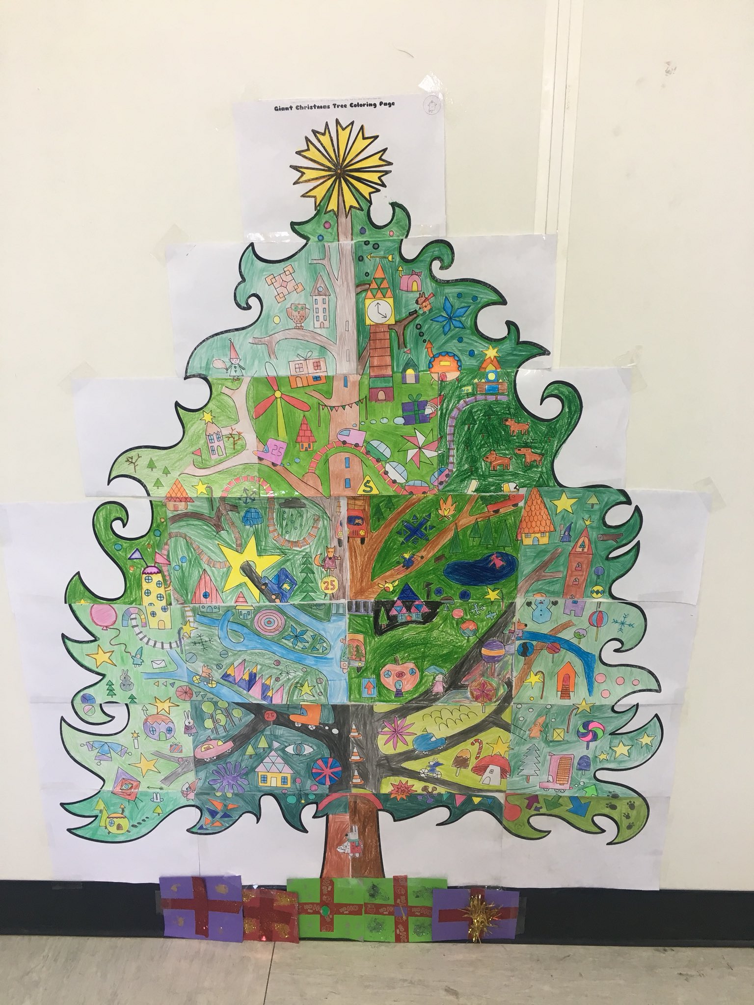 If you are searching for Christmas Tree Coloring Page Printable you are arriving at the right place. This giant free printable coloring page has been a hit with everyone and just the right size for all to enjoy. Its patched together from 21 sheets of paper or 22 if youre printing in A4 and all you need to do is print trim and tile them together with glue this bits a giant jigsaw puzzle to add to the fun.